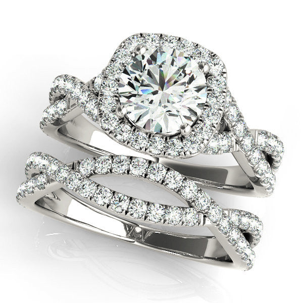 White gold Round Halo Twist Band Diamond Engagement Ring with Prong Setting