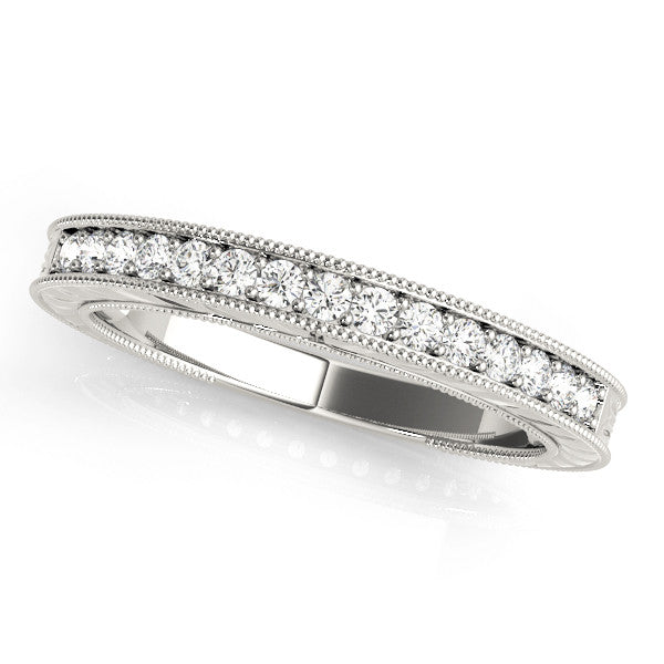 White gold Round Diamond Milgrain Contour Wedding Band with Pavé Setting