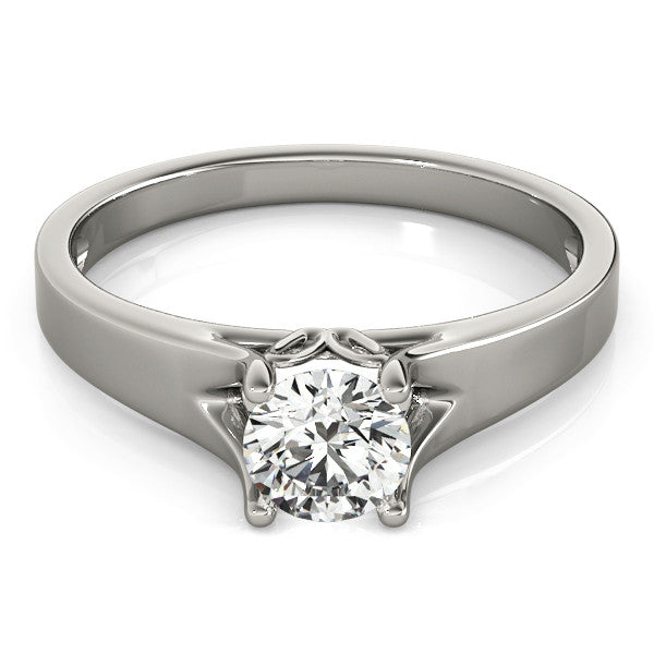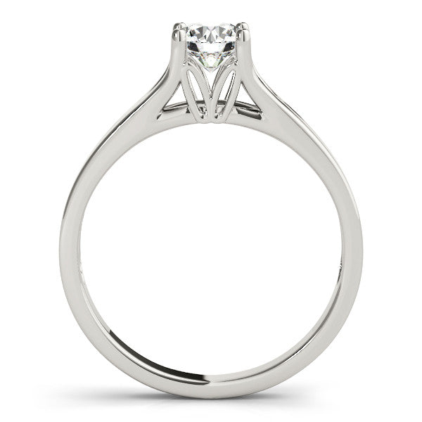 White gold Round Solitaire Diamond Ring with Cathedral Band and Four-Prong Setting