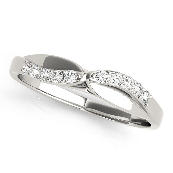 White gold Pavé Round Diamond Twist Band with Shared Prong Setting