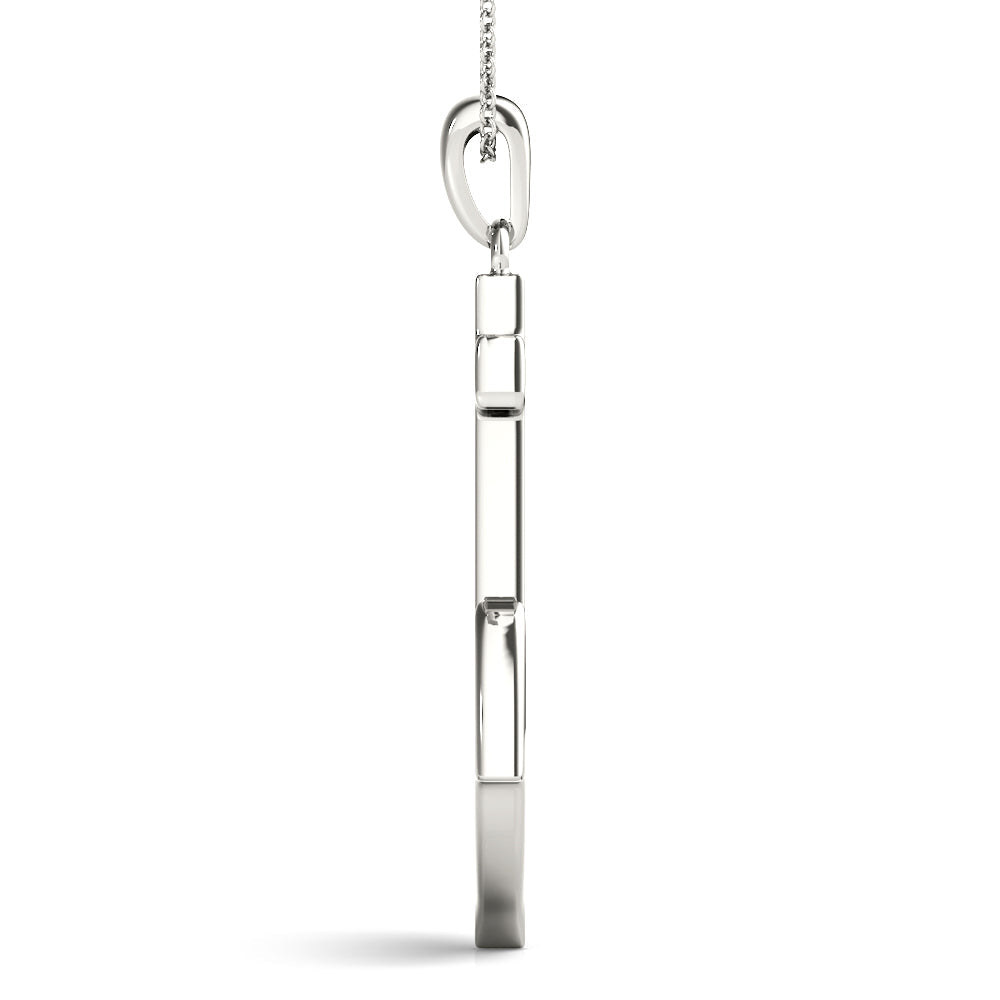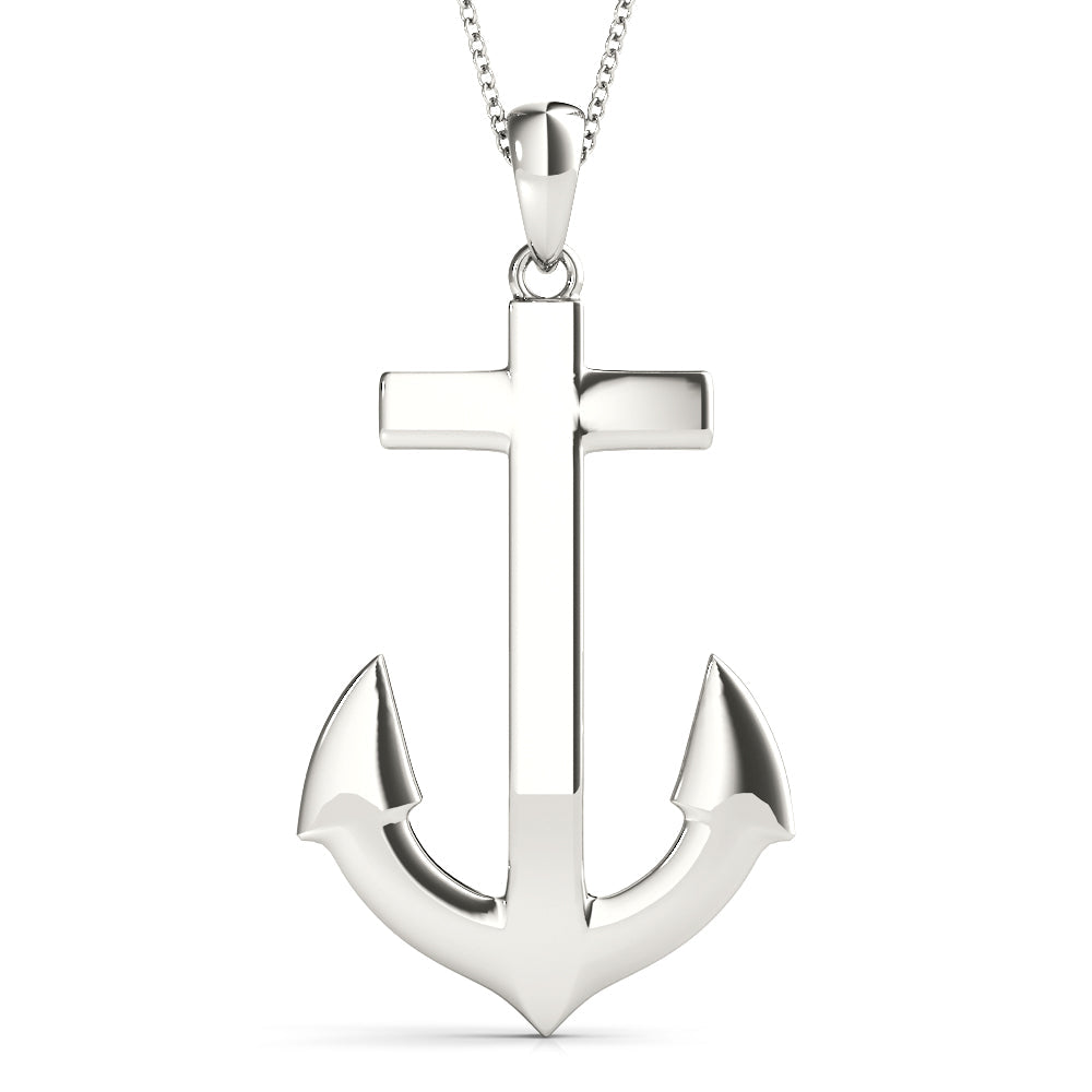 White gold Silver Anchor Pendant with Round Diamond Bezel Setting