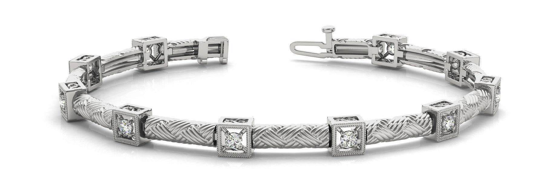 White gold Square Box Diamond Bracelet with Round Cut Stones and Braided Band