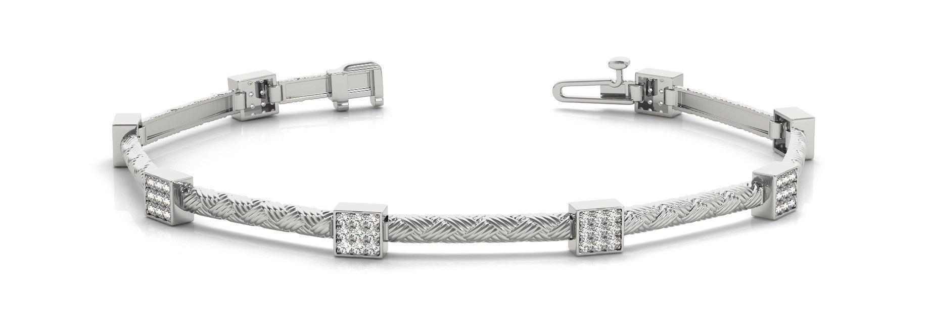 White gold Square Pave Diamond Cable Bracelet with Box Clasp