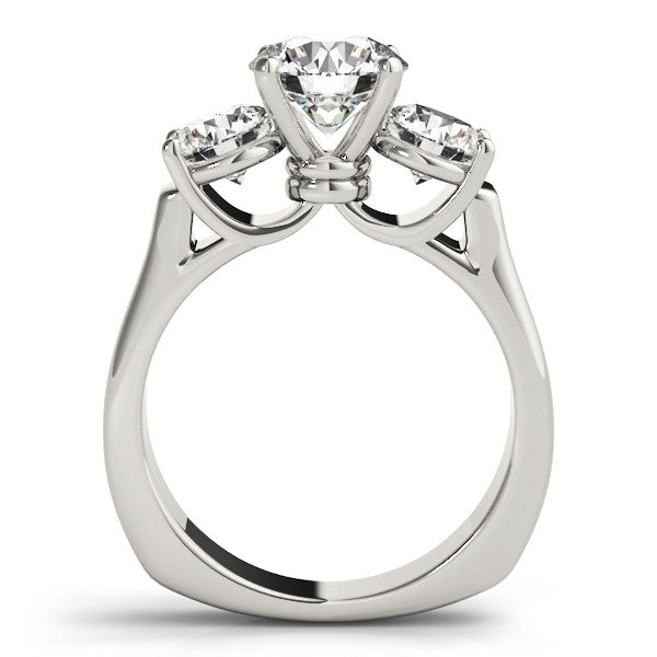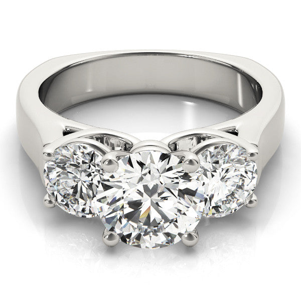 White gold Three-Stone Round Brilliant Diamond Trellis Ring with Comfort Fit Band