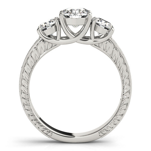 White gold Three-Stone Round Cut Pavé Band with Prong Setting