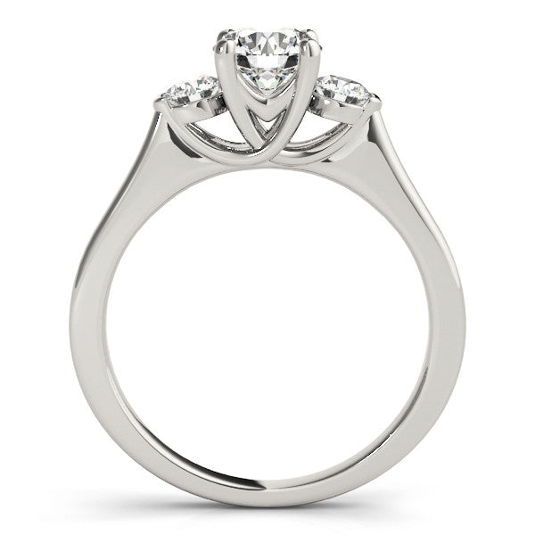 White gold Three-Stone Round Cut Solitaire Engagement Ring with Prong Setting and Classic Band