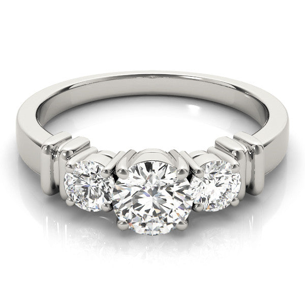 White gold Three-Stone Round Diamond Solitaire Ring with Channel Band and Prong Setting