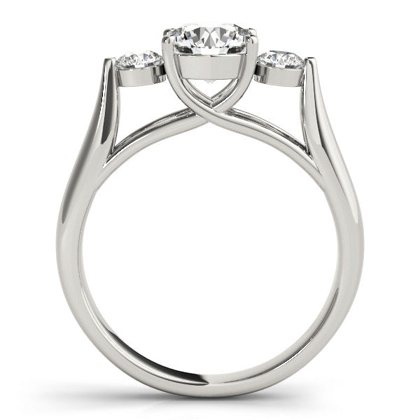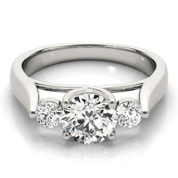 White gold Three-Stone Round Diamond Solitaire with Tapered Band and Four-Prong Setting