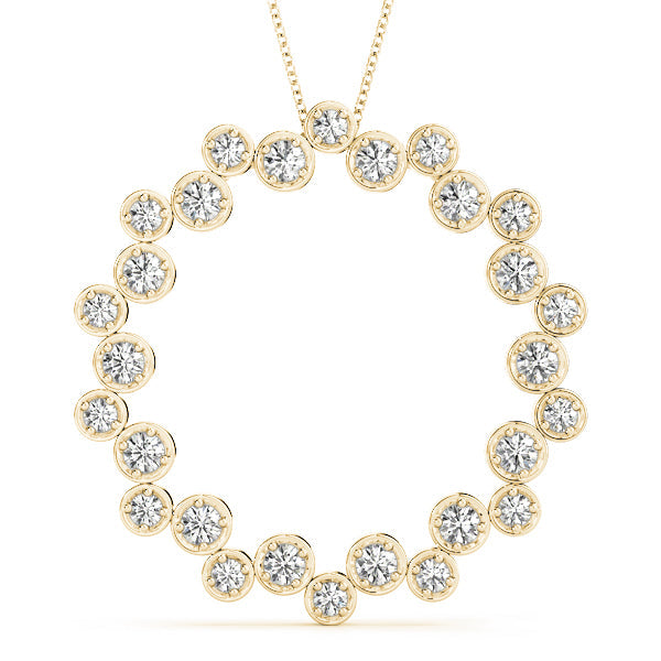 Yellow gold Bezel Set Round Diamond Circle Pendant