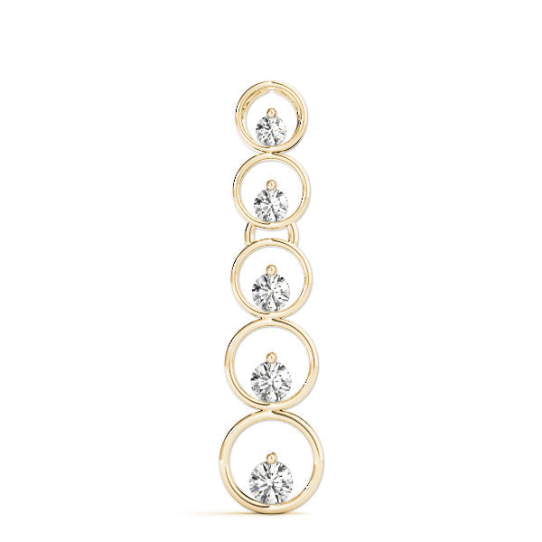 This elegant pendant features a cascading design of five round diamonds, each securely nestled within a sleek bezel setting. The diamonds are expertly held in place by a delicate prong setting, allowing maximum light to enhance their brilliance. Crafted with precision, this pendant offers a modern yet timeless aesthetic, perfect for any occasion. The smooth, polished finish adds a touch of sophistication, making it a versatile addition to any jewelry collection.