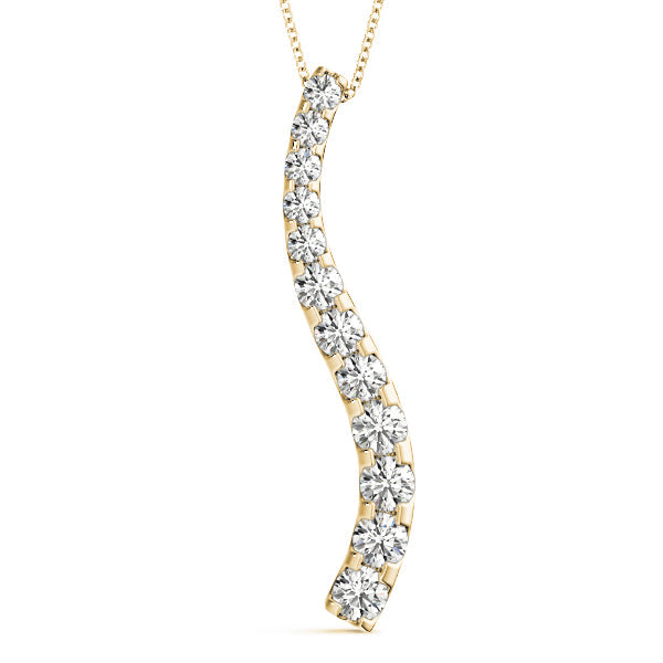 Yellow gold Curved Diamond Pendant with Round Stones in Prong Setting