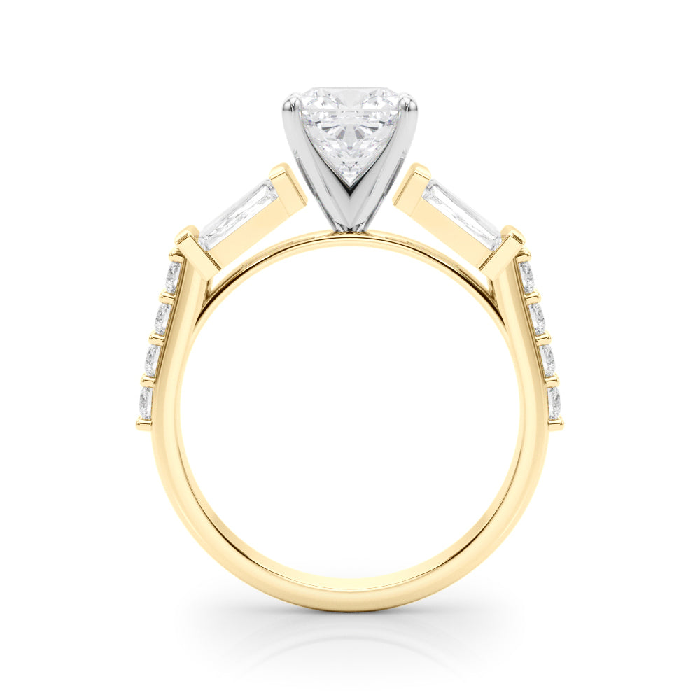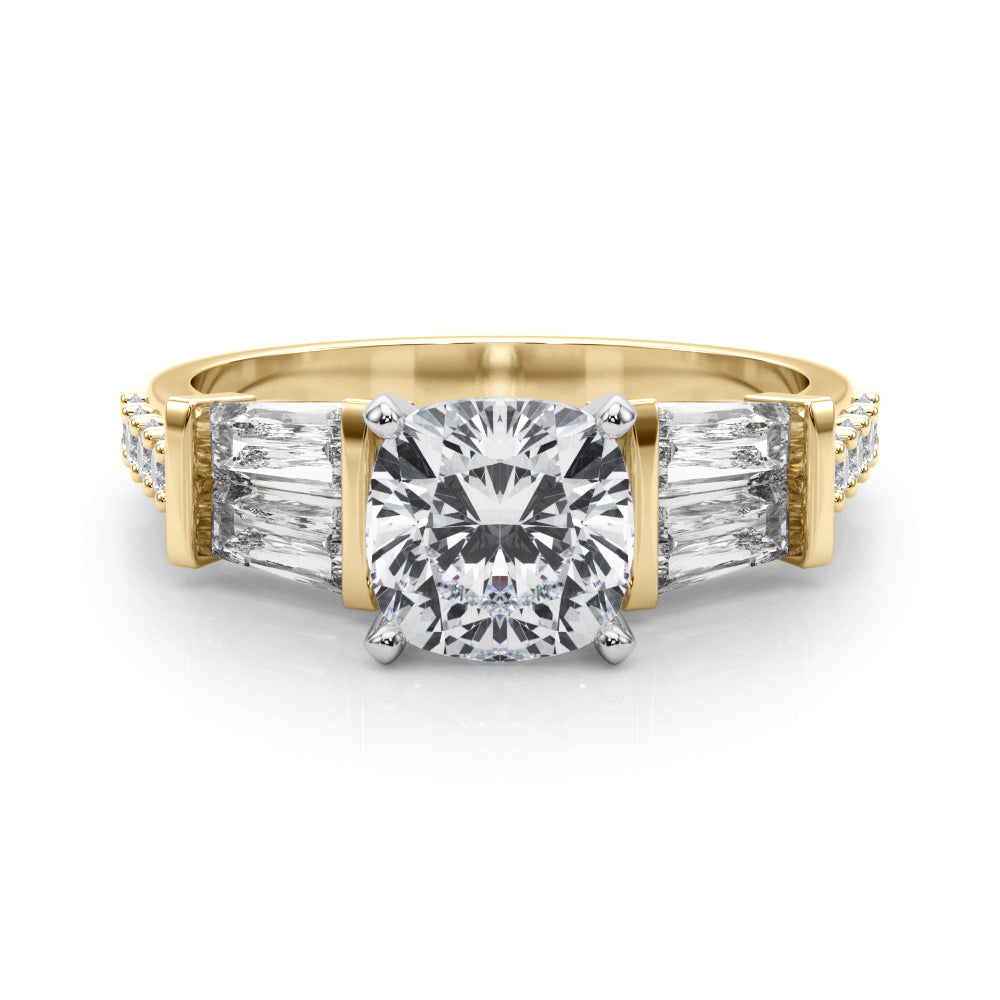 Yellow gold Cushion Solitaire Baguette Side Stone Channel Set Engagement Ring