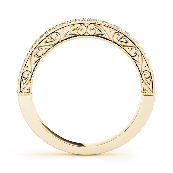 Yellow gold Channel Set Round Diamond Milgrain Engraved Band
