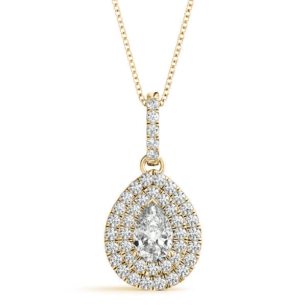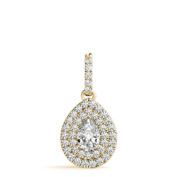 Yellow gold Double Halo Pear Diamond Pendant with Pavé Setting