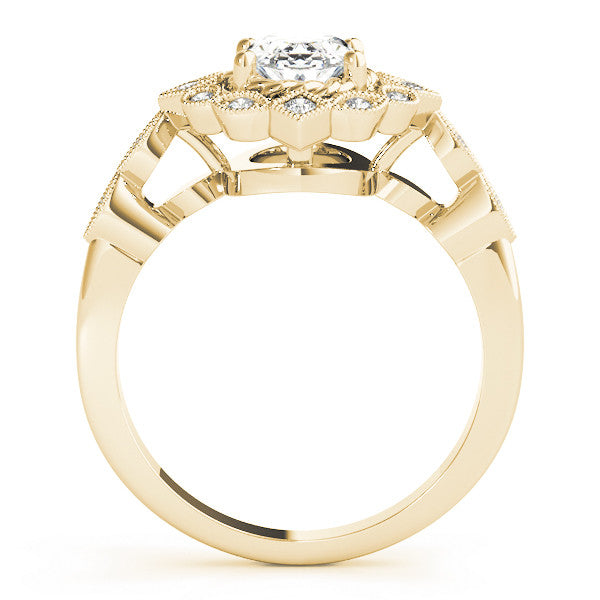 Yellow gold Halo Oval Diamond Milgrain Infinity Band with Four-Prong Setting