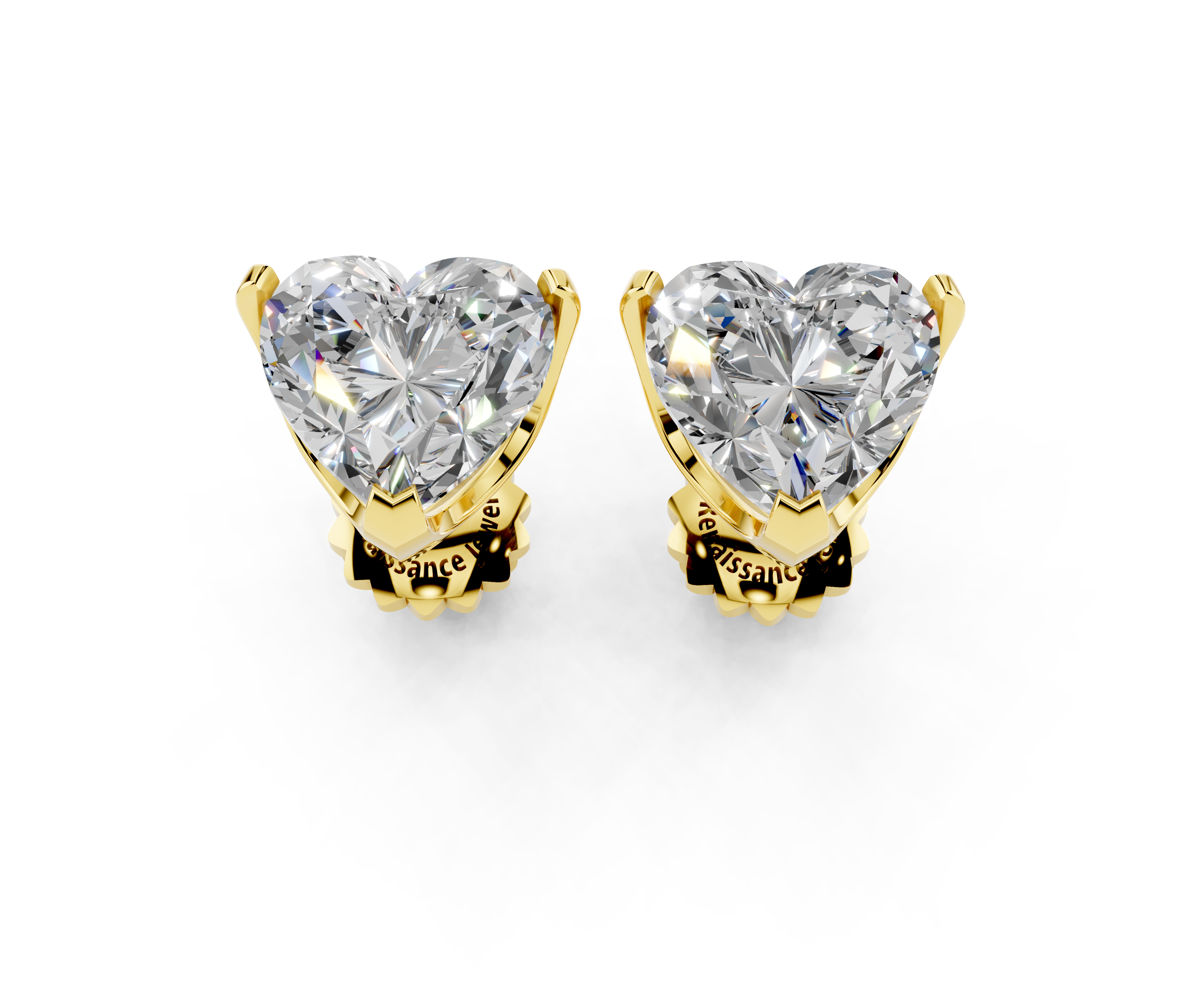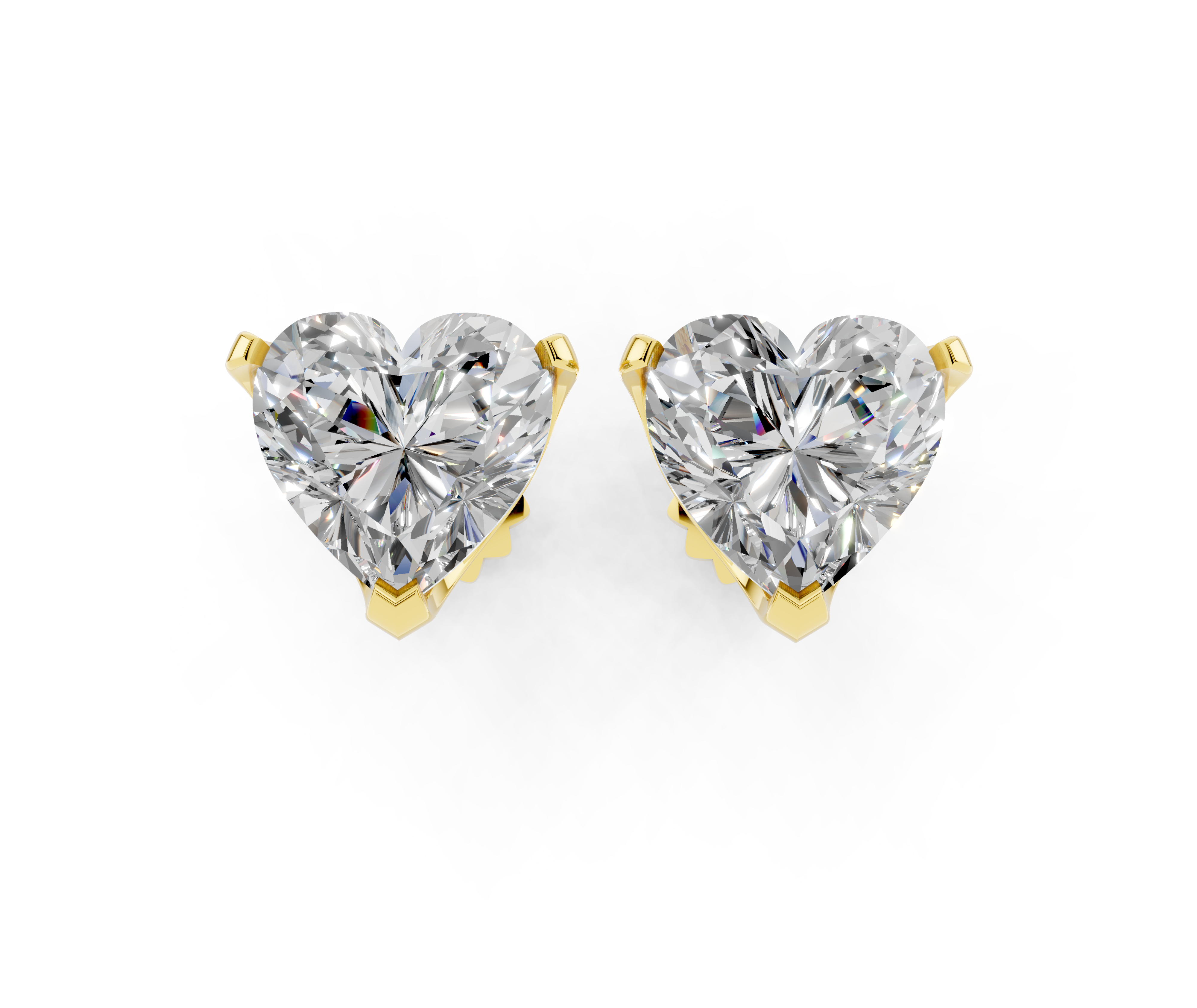 These exquisite earrings feature heart brilliant diamonds, each securely held in a classic four-prong basket setting. The stones are expertly cut to maximize their sparkle and brilliance, making them a timeless addition to any jewelry collection. Set in lustrous yellow gold, these stud earrings offer a perfect blend of elegance and sophistication, ideal for both everyday wear and special occasions. The secure push-back or screw-back closure ensures comfort and ease of wear, making these earrings a must-have for any jewelry enthusiast.