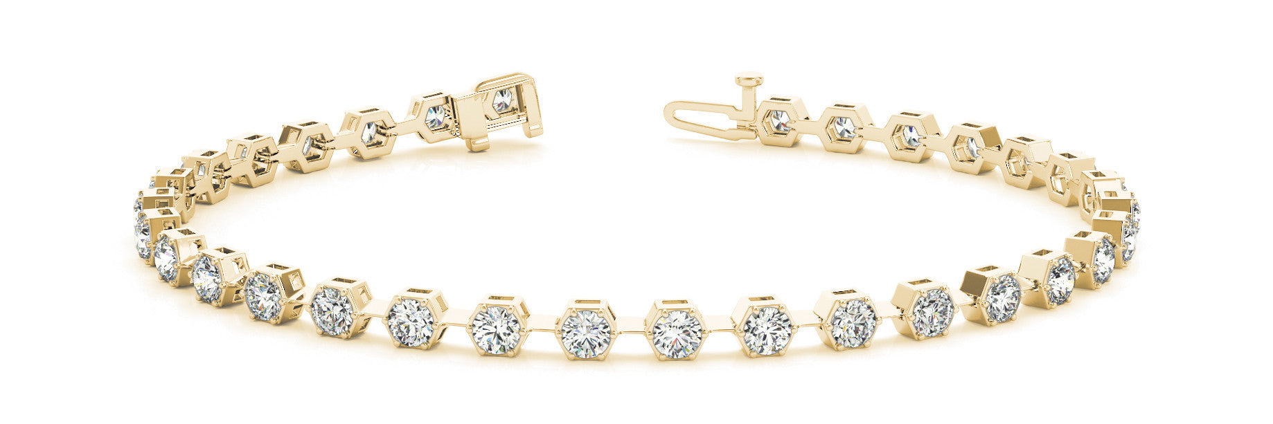 Yellow gold Hexagon Bezel Round Diamond Tennis Bracelet