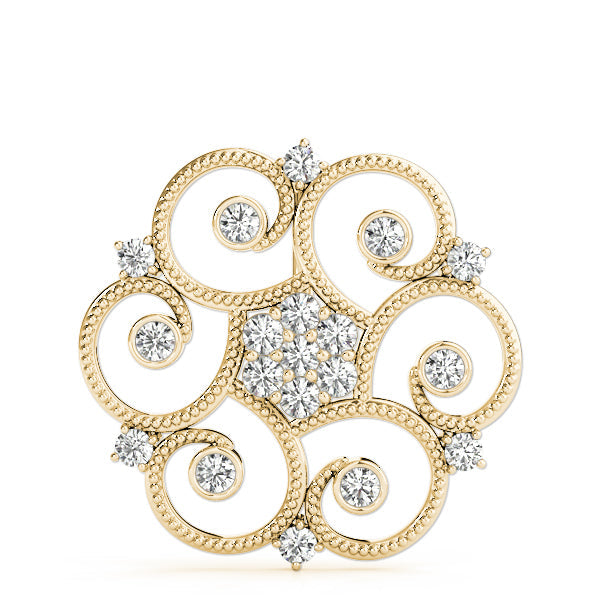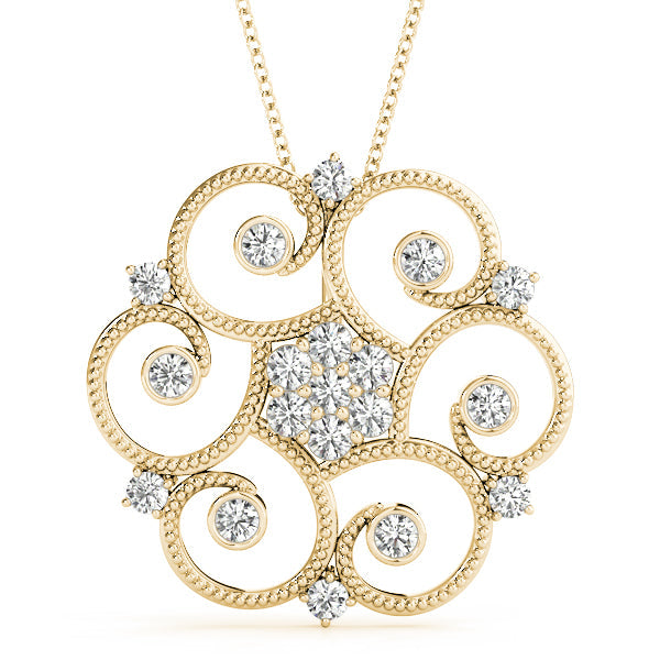Yellow gold Milgrain Diamond Round Swirl Pendant with Prong Setting