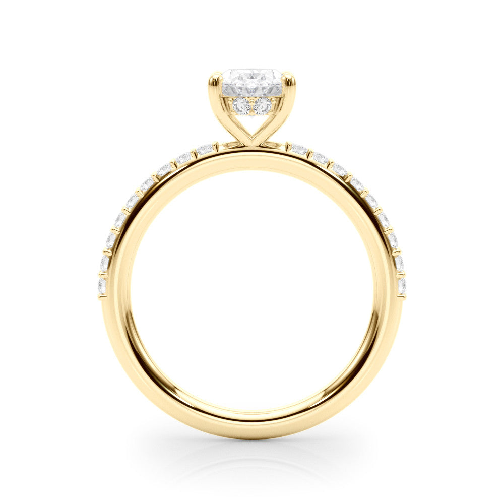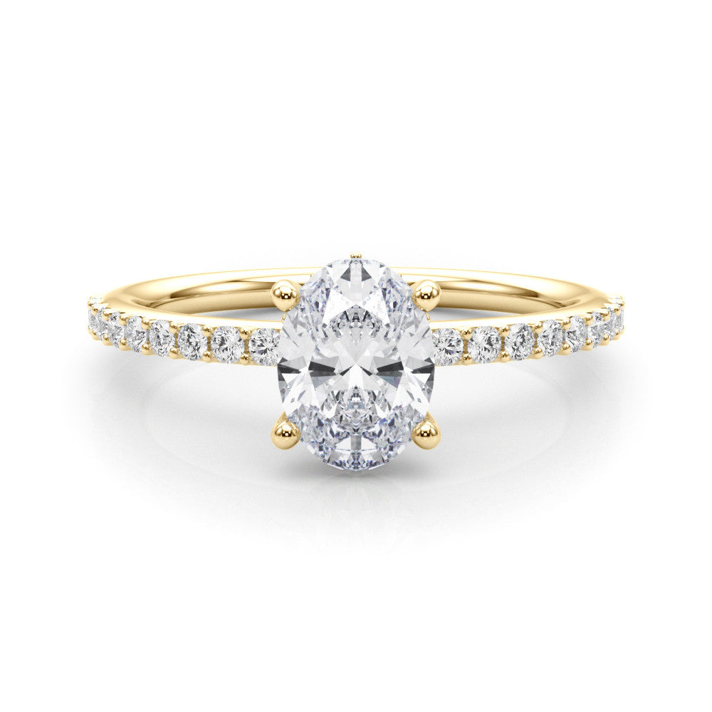 Yellow gold Oval Cut Diamond Pavé Band with Four-Prong Setting
