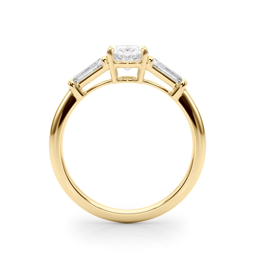 Yellow gold Oval Cut Diamond Ring with Tapered Baguette Side Stones in Four-Prong Setting