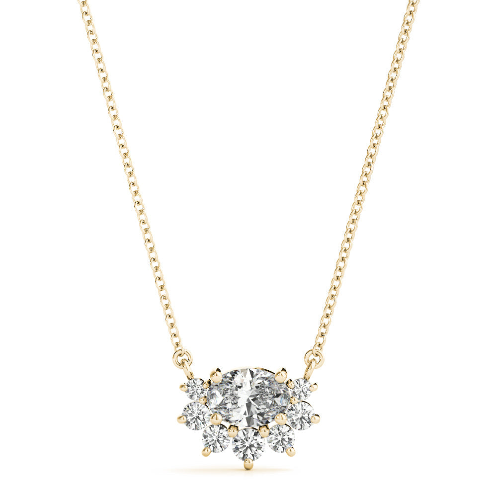Yellow gold Oval Diamond Cluster Pendant with Prong Setting