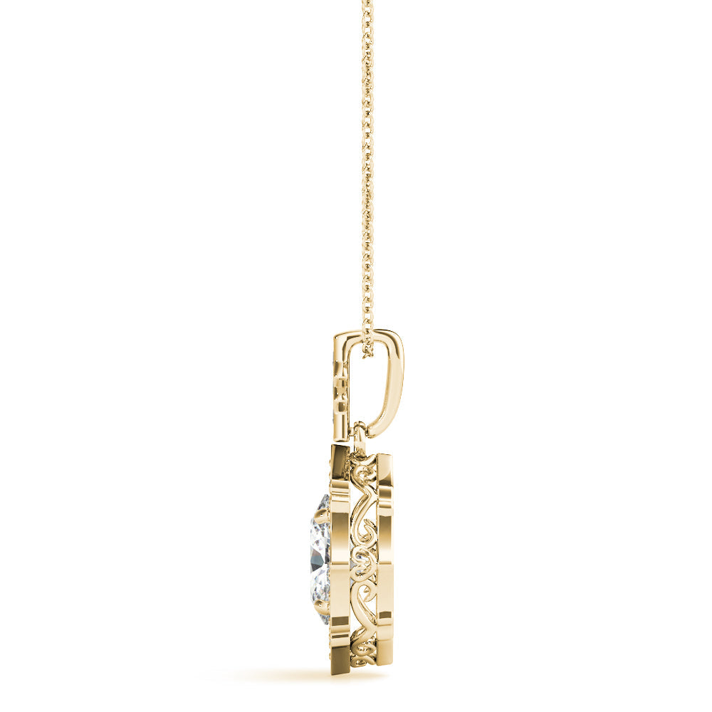 Yellow gold Oval Diamond Halo Pendant with Milgrain Prong Setting