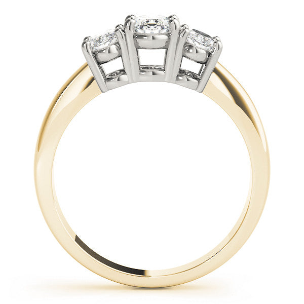 Yellow gold Oval Three-Stone Diamond Ring with Solitaire Band and Four-Prong Setting