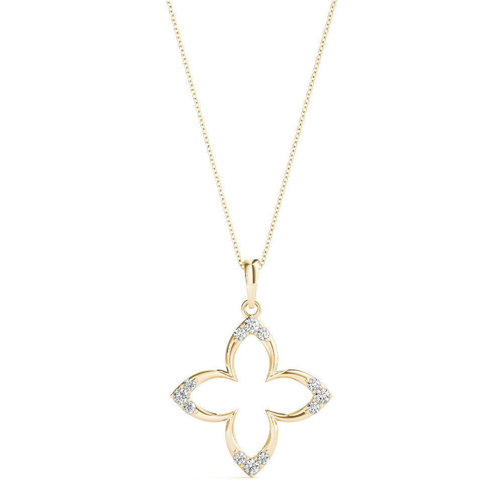 This exquisite pendant features a delicate openwork design in a marquise shape, adorned with shimmering pavé-set diamonds. The stones are securely held in place with elegant prong settings, enhancing their brilliance and sparkle. Crafted in lustrous metal, this pendant offers a sophisticated and timeless appeal, perfect for adding a touch of elegance to any ensemble.