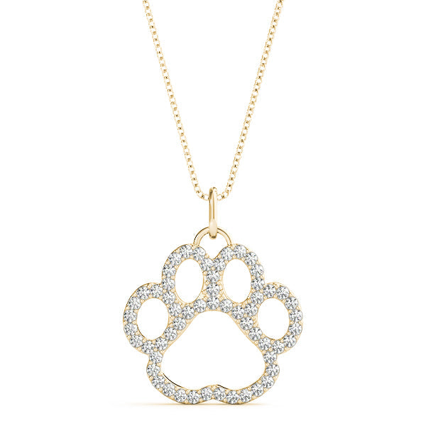 This exquisite Pavé Round Diamond Paw Pendant is a stunning piece of jewelry that beautifully captures the essence of elegance and charm. Crafted in a delicate paw shape, the pendant is encrusted with shimmering round diamonds set in a pavé setting, ensuring maximum sparkle from every angle. The diamonds are securely held in place by a classic prong setting, highlighting their brilliance and clarity. Suspended from a sleek chain, this pendant is perfect for animal lovers and those who appreciate fine craftsmanship. Whether worn casually or for a special occasion, this pendant adds a touch of sparkle and sophistication to any ensemble.