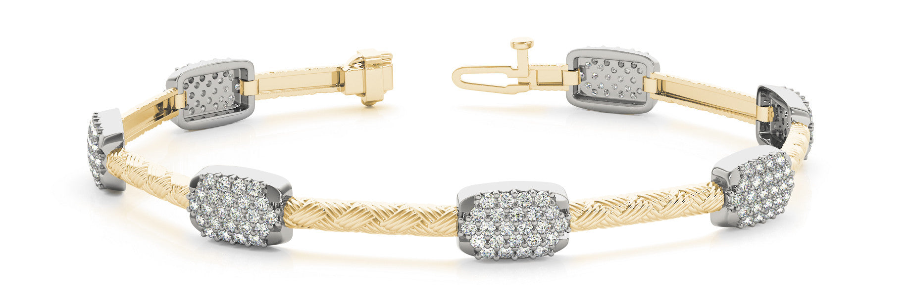Yellow gold Pavé Round Diamond Cable Bracelet with Box Clasp