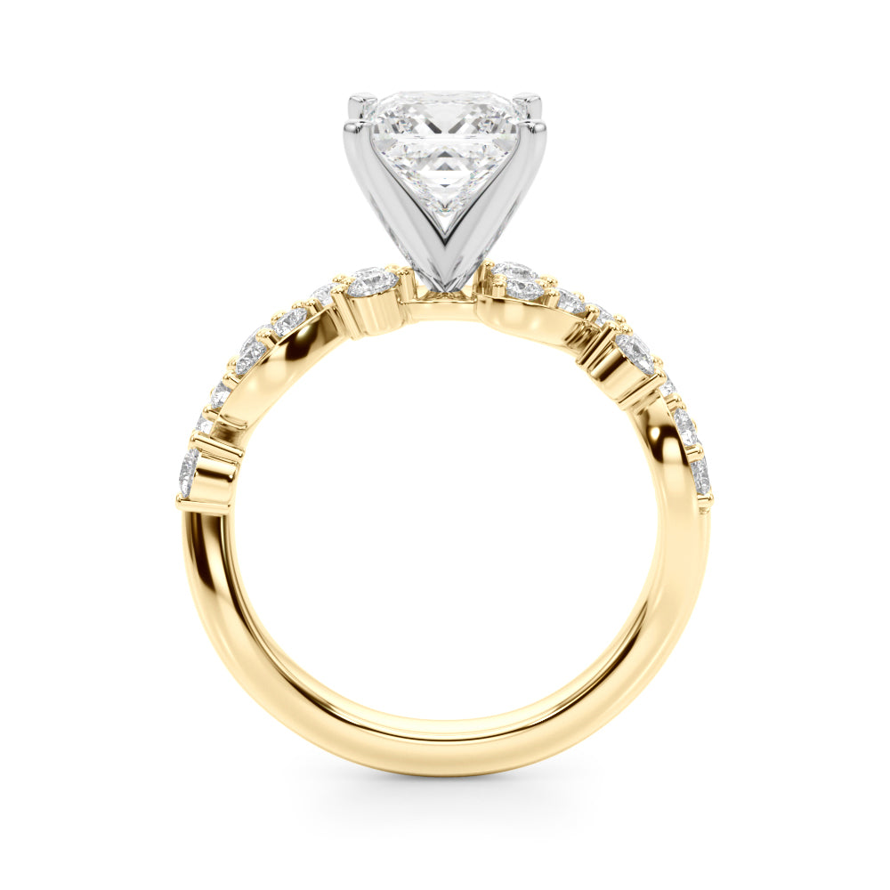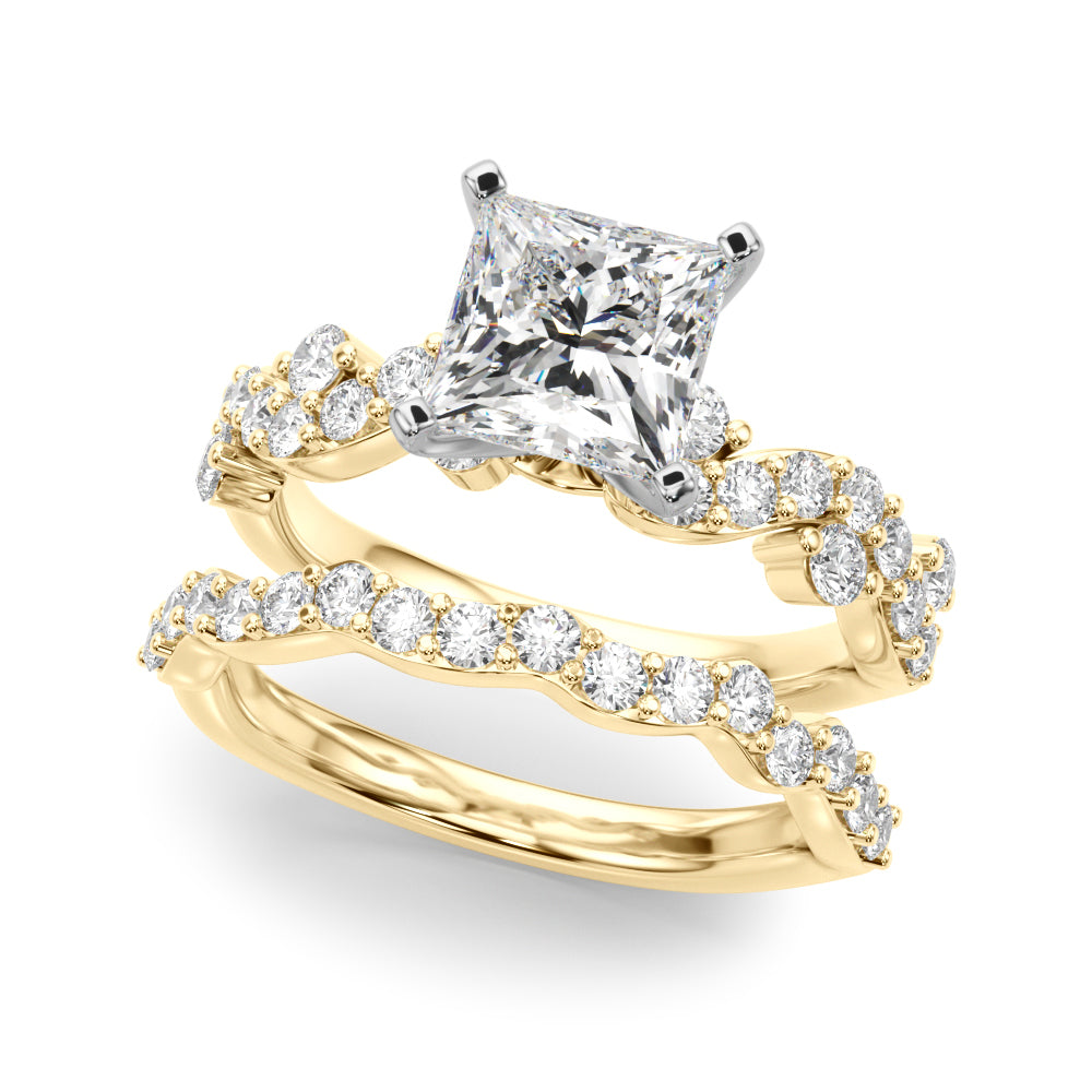 Yellow gold Princess Cut Solitaire Diamond Twisted Band with Pave Setting