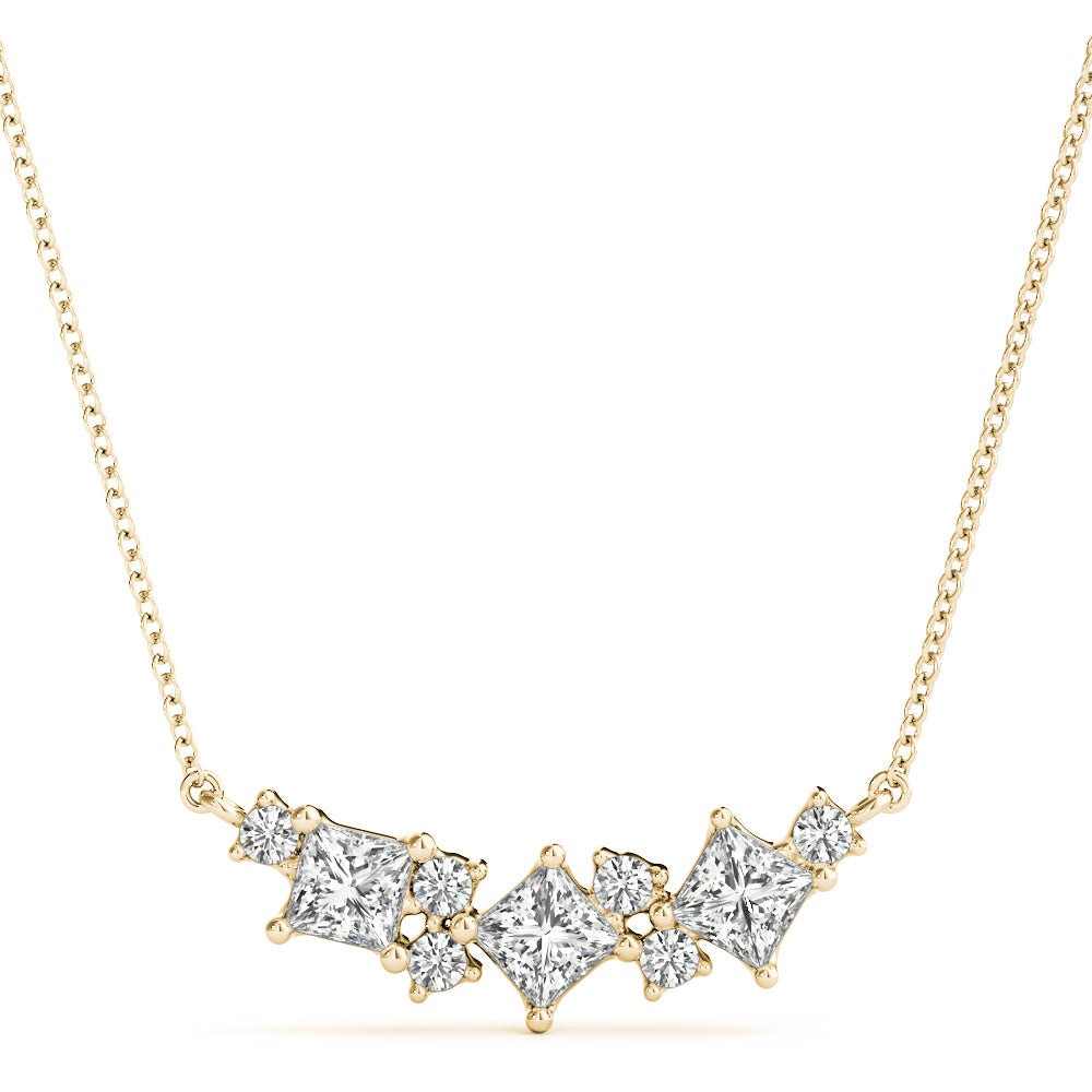 Yellow gold Princess Cut V-Shape Diamond Pendant with Four-Prong Setting