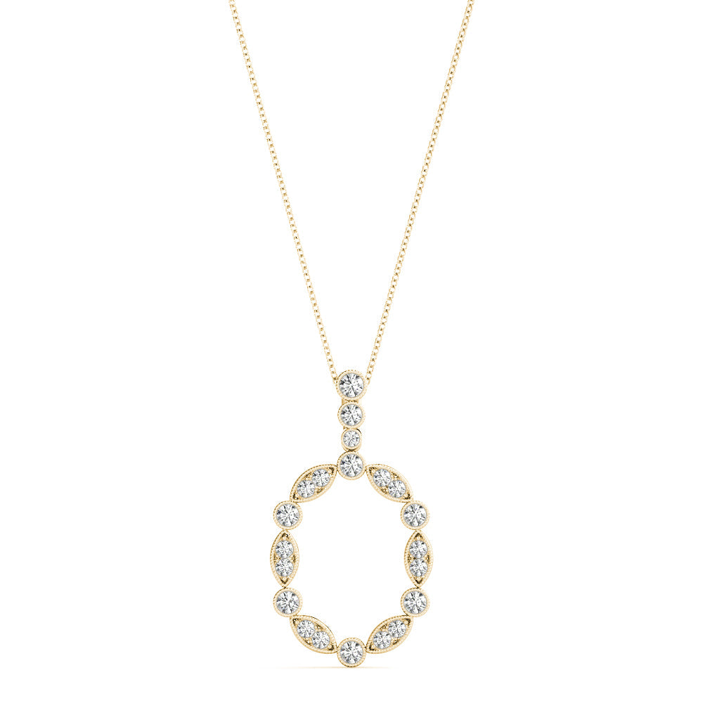 Yellow gold Round and Marquise Diamond Bezel Set Pendant