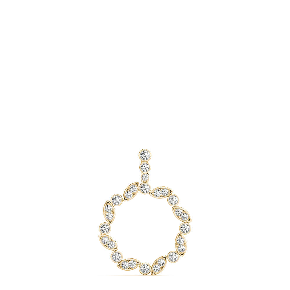Yellow gold Round and Marquise Diamond Circle Pendant with Bezel and Prong Setting