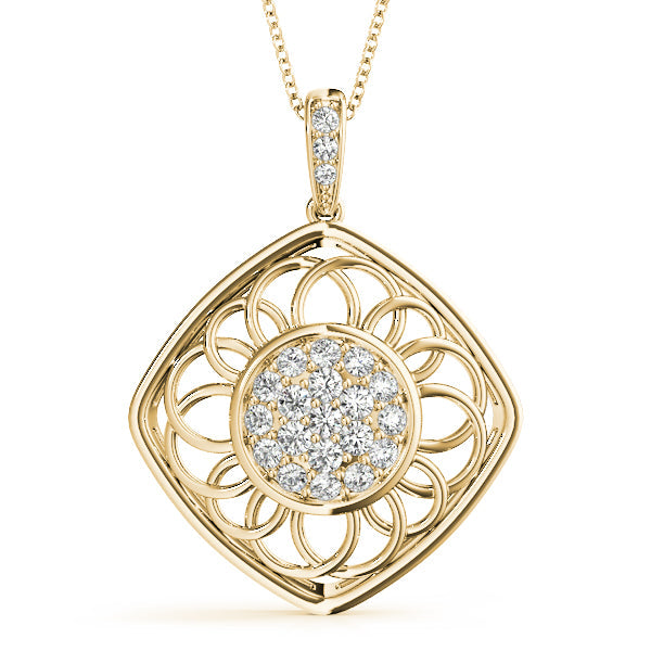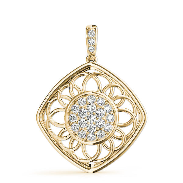 Yellow gold Round Cluster Diamond Prong Set Pendant