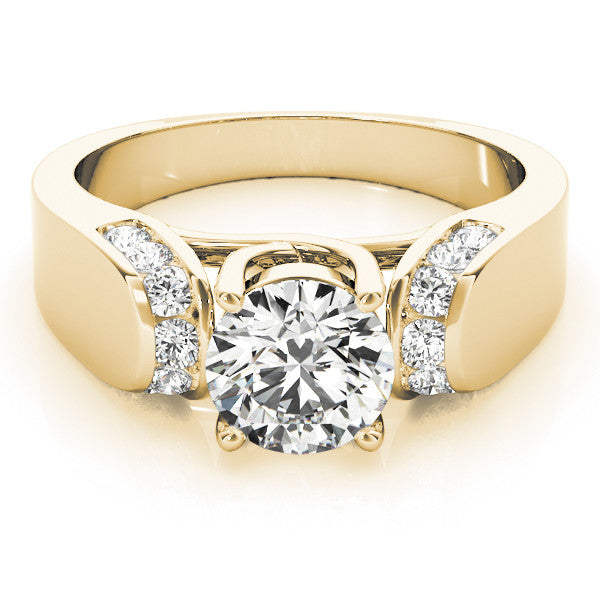 Yellow gold Round Cut Diamond Channel Set Solitaire Ring with Four-Prong Setting