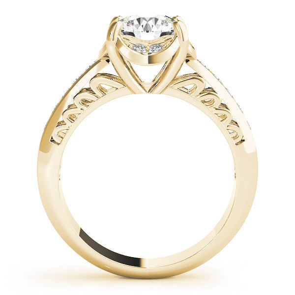 Yellow gold Round Cut Halo Diamond Ring with Channel Set Band and Four-Prong Setting