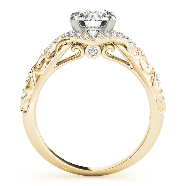 Yellow gold Round Cut Solitaire Diamond Ring with Pave Band and Four-Prong Setting