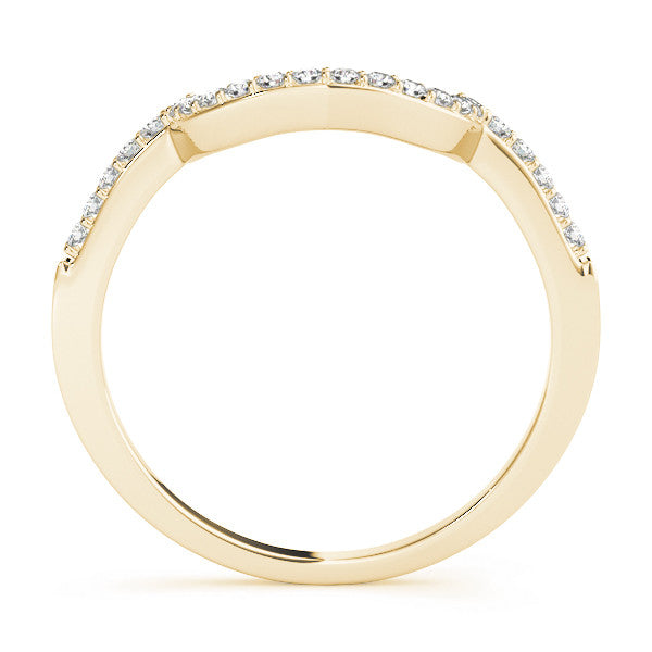 Yellow gold Curved Diamond Wedding Band with Round Cut Stones and Shared Prong Setting