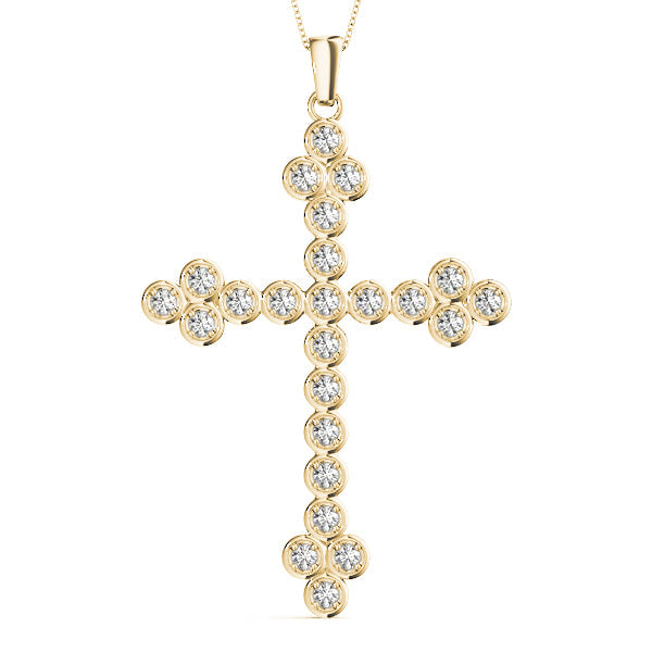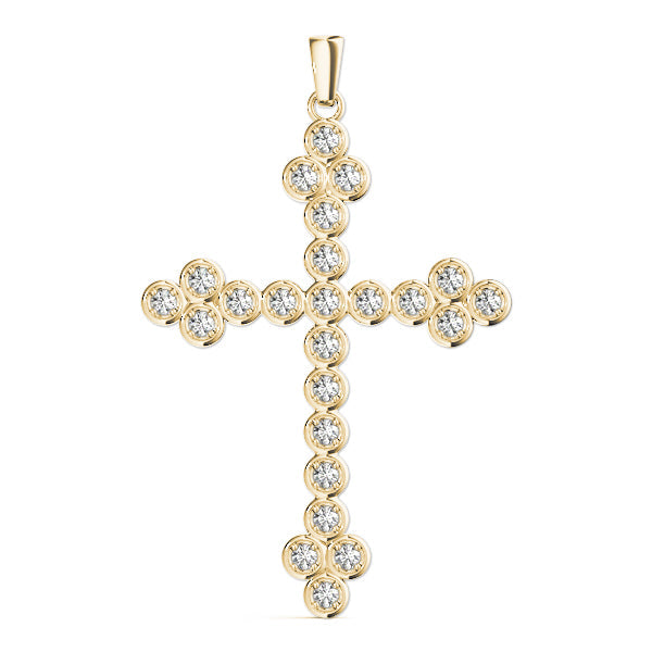 Yellow gold Round Diamond Bezel Set Cross Pendant