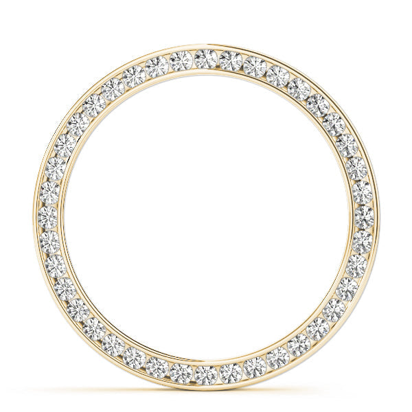 This exquisite pendant showcases a circle of round diamonds, meticulously channel set to create a seamless and elegant design. The stones are securely held in place with a prong setting, ensuring both durability and brilliance. Crafted in lustrous metal, this pendant offers a timeless appeal, making it a perfect addition to any jewelry collection. Whether worn alone or paired with other pieces, its understated elegance is sure to captivate and enchant.