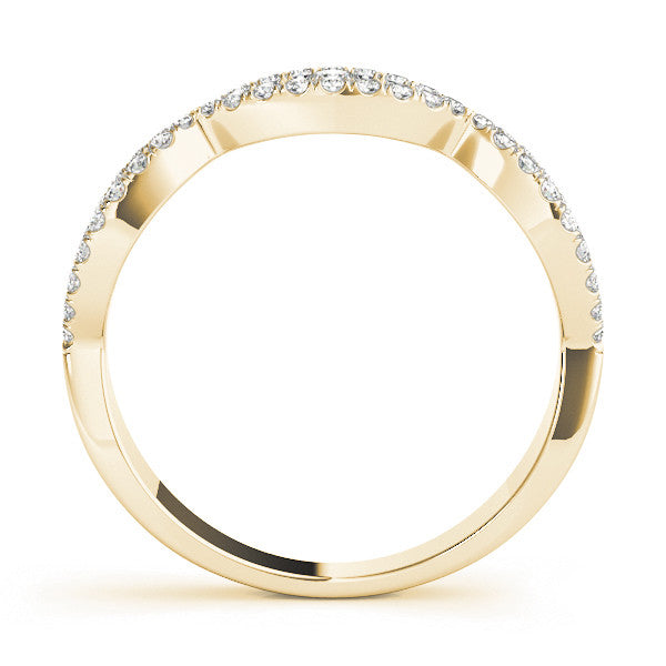 Yellow gold Round Diamond Marquise Halo Twist Band with Pavé Setting