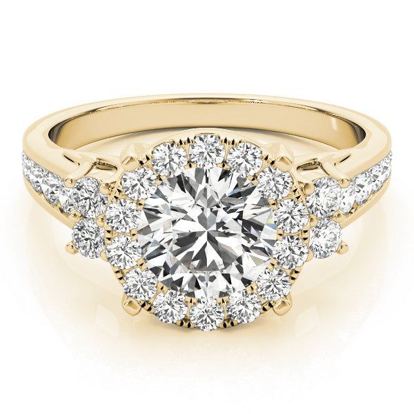 Yellow gold Round Halo Diamond Engagement Ring with Split Shank and Four-Prong Setting