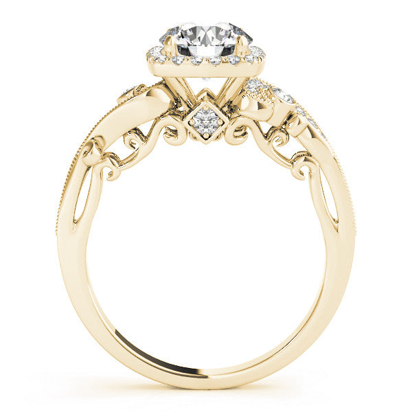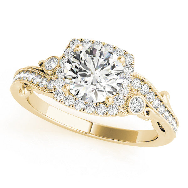 Yellow gold Round Halo Diamond Ring with Twisted Band and Four-Prong Setting