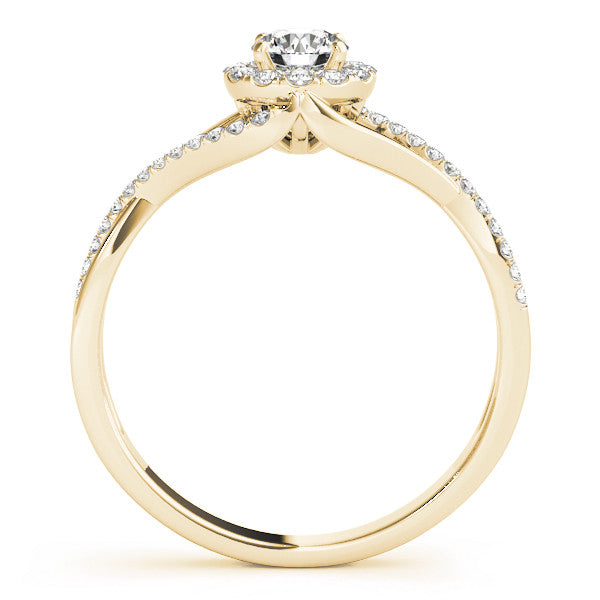 Yellow gold Round Halo Twist Band Prong Set Ring