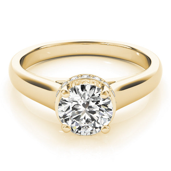 Yellow gold Round Solitaire Diamond Engagement Ring with Four-Prong Setting and Tapered Band
