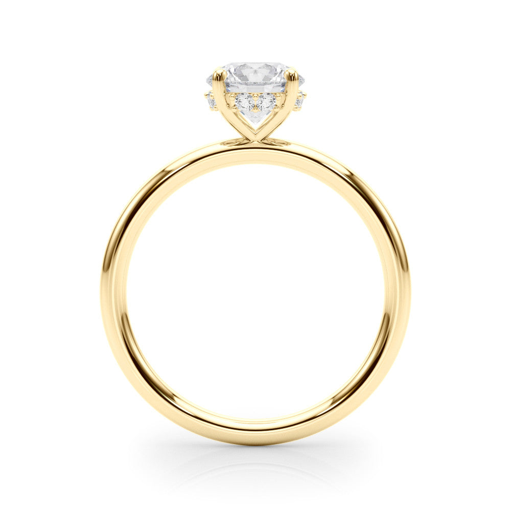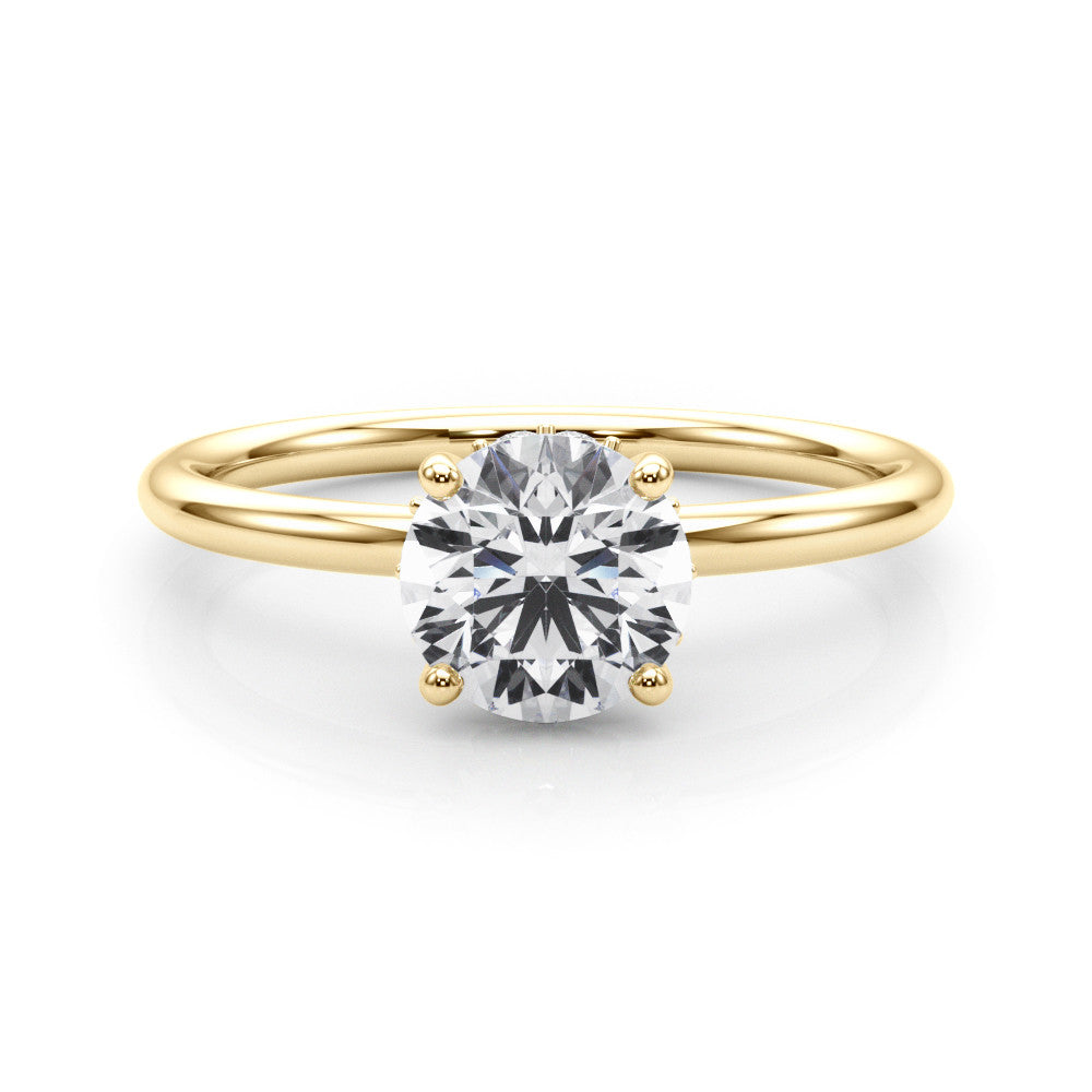 Yellow gold Round Solitaire Diamond Ring with a Classic Band and Four-Prong Setting