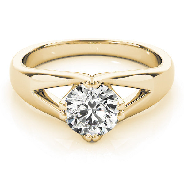 Yellow gold Round Solitaire Split Shank Prong Set Ring