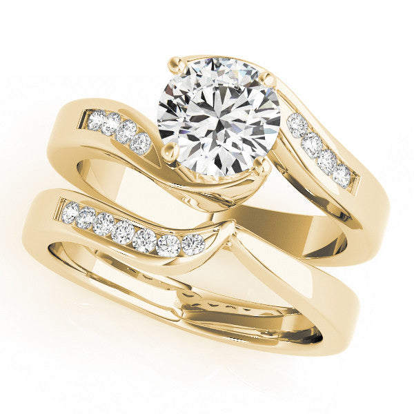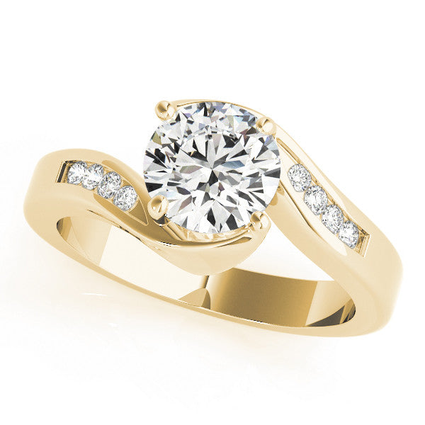 Yellow gold Round Solitaire Twist Band with Channel Set Diamonds and Four-Prong Setting
