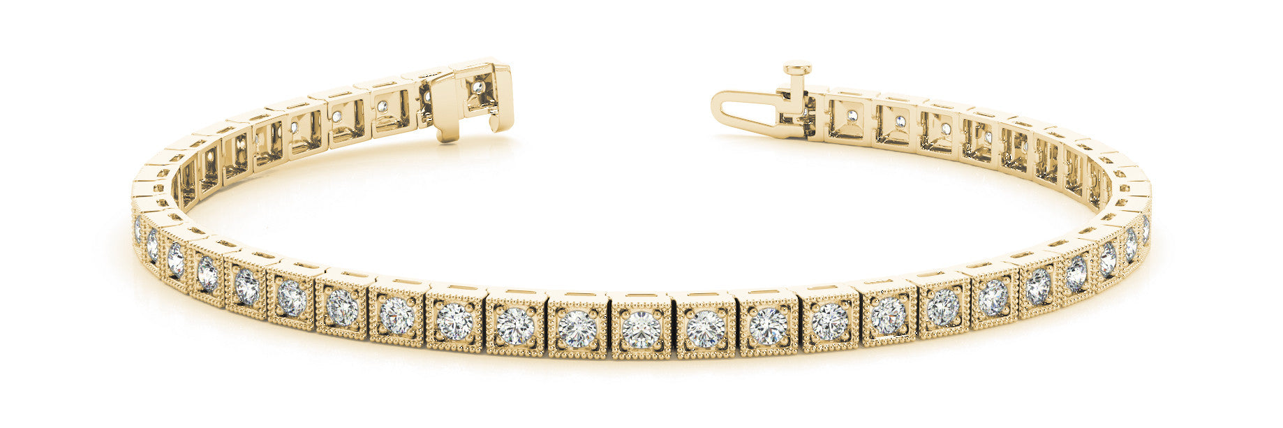 Yellow gold Square Milgrain Diamond Tennis Bracelet